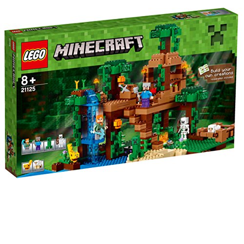 -. Feature : Enthält 2 Minifiguren: Steve und Alex sowie ein Creeper(TM)-Skelett, einen Ozelot und ein Schaf. / Greif dir dein Eisenschwert, setz deinen Helm auf und verteidige das Dschungel-Baumhaus gegen die eindringenden Mobs. / Überrasche das Skelett mit der geheimen Falltür. / Aktiviere die Fallen-Funktion im Boden, um den Angriff des explodierenden Creeper(TM) zu vereiteln. / . Mach einen schnellen Abgang auf der Wasserfall-Rutsche.