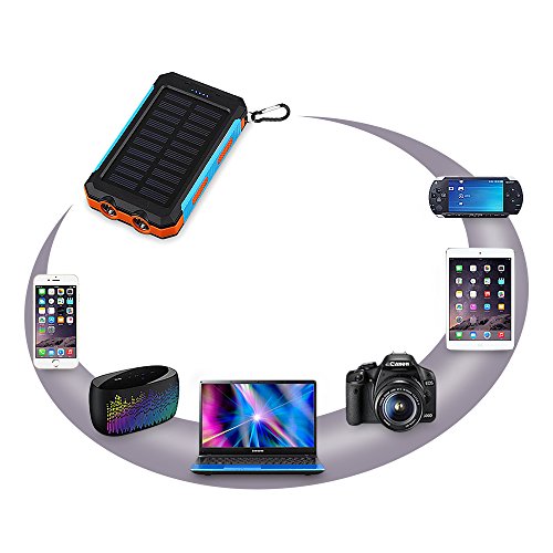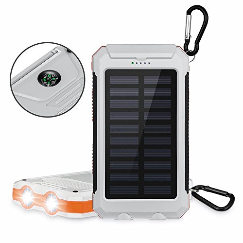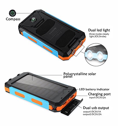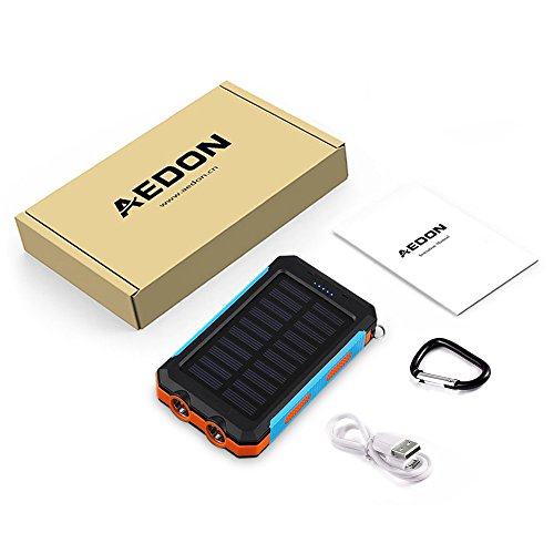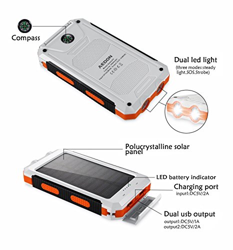-. Title : Aedon 10000mAh Solar Charger, Dual USB Solar Panel Charger with 2LED Light Carabiner Compass Portable for Emergency Outdoor Camping Travel