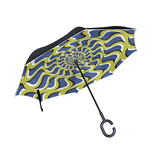 (AHOMY)/Accessories/Umbrellas/DIRECT FROM USA/AHOMY Colorful Ring Grid Background Pattern Large Double Layer Inverted Umbrella Windproof UV P...