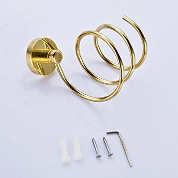 AUSWIND Gold Color Brass HairDryer Holder Polished Wall Mount Bathroom Hairdryer Organizer Rack