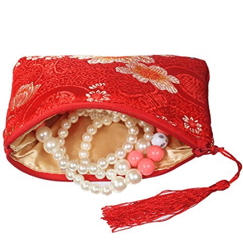 Product Description kilofly Chinese Silk Brocade Padded Tassel Zipper Jewelry Pouch Bags help organizing the little things in your life. They are great for keeping small jewelry, coins, and other treasures, as well as being used as elegant gift pouches. The padded layers make good protection for your valuable jewelry from scratches and other damages.