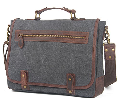 -. Title : Men Vintage Business Canvas Laptop Bag One Shoulder With Leather Decor Ponerine