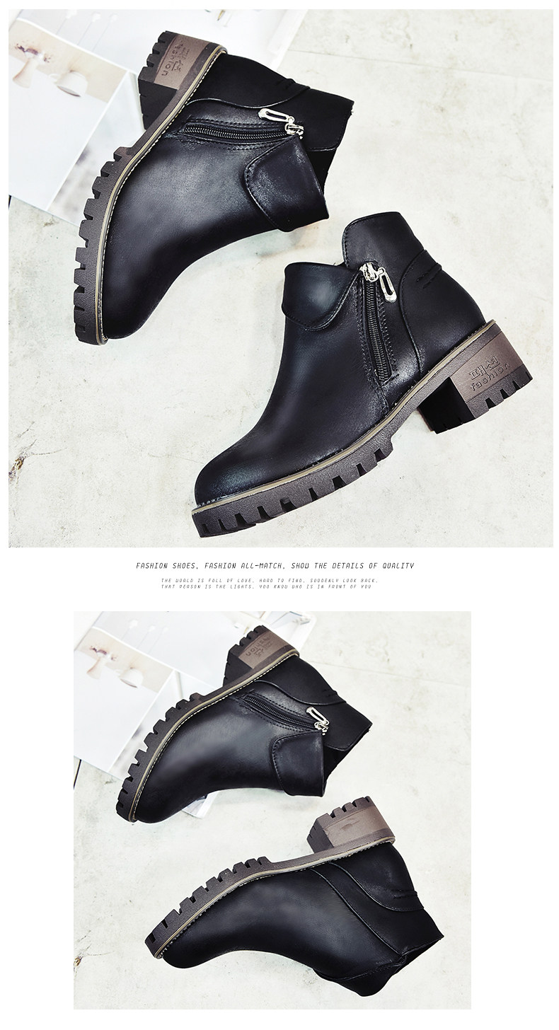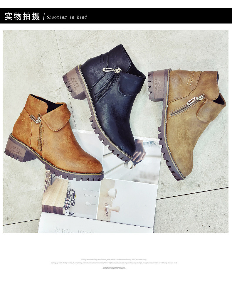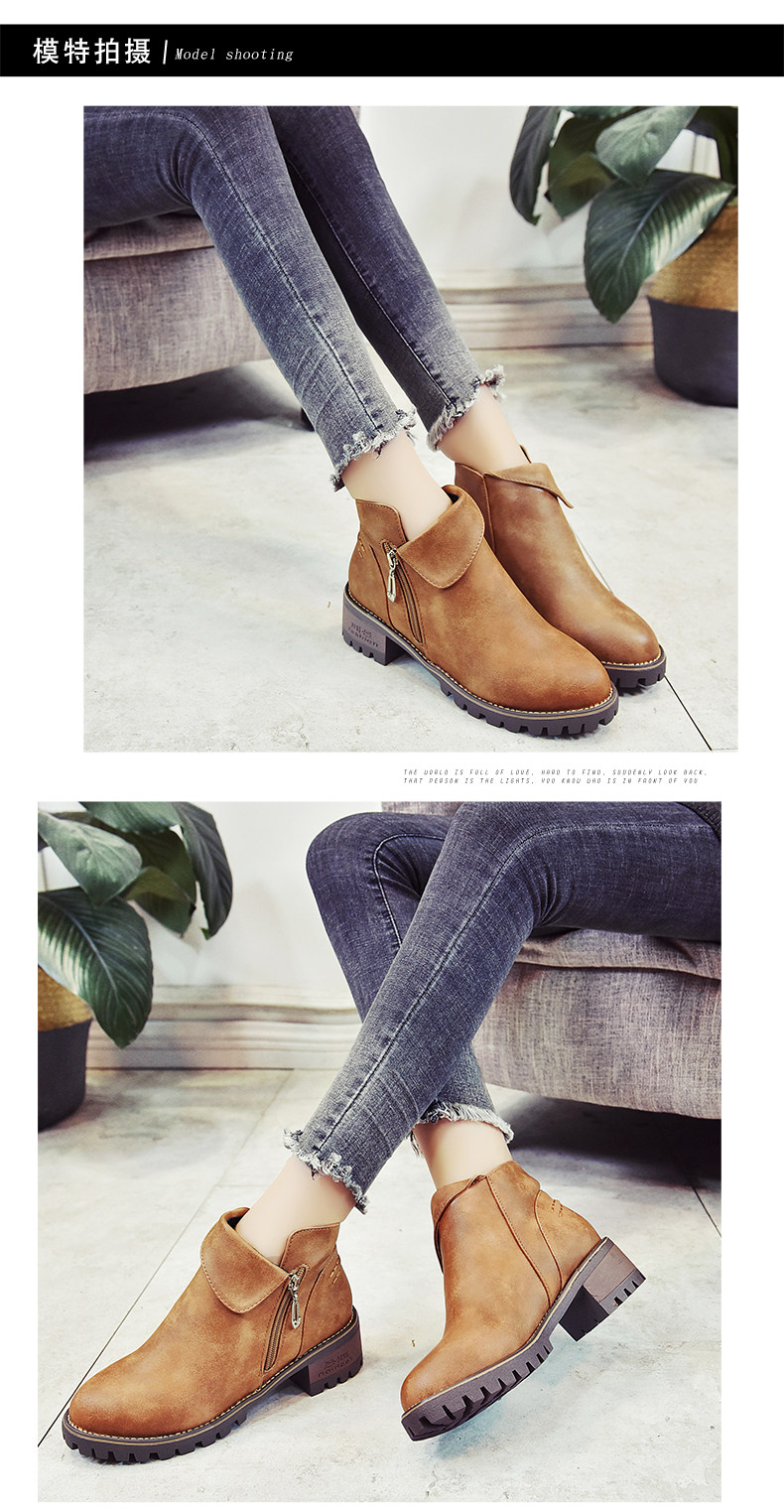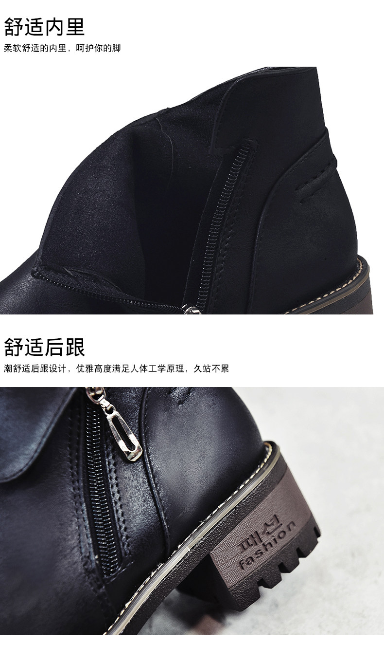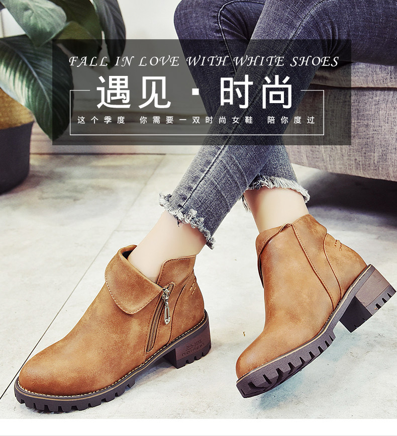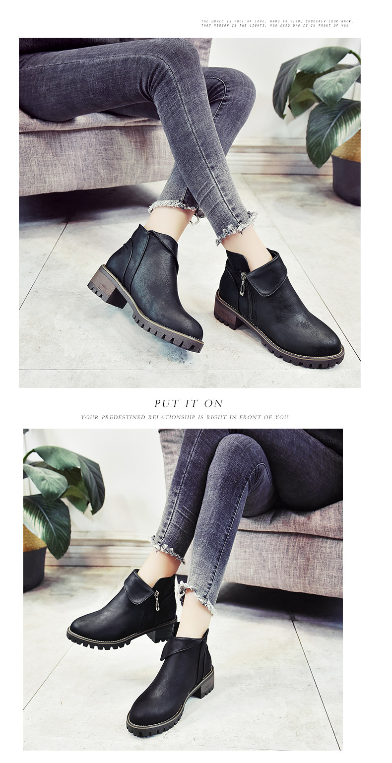 韩版粗跟切尔西靴中跟短靴女秋季新款原宿单靴百搭学生女鞋子