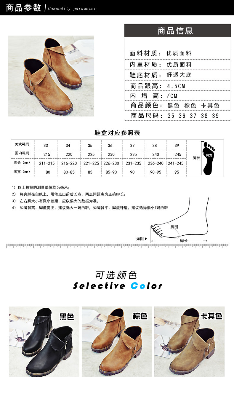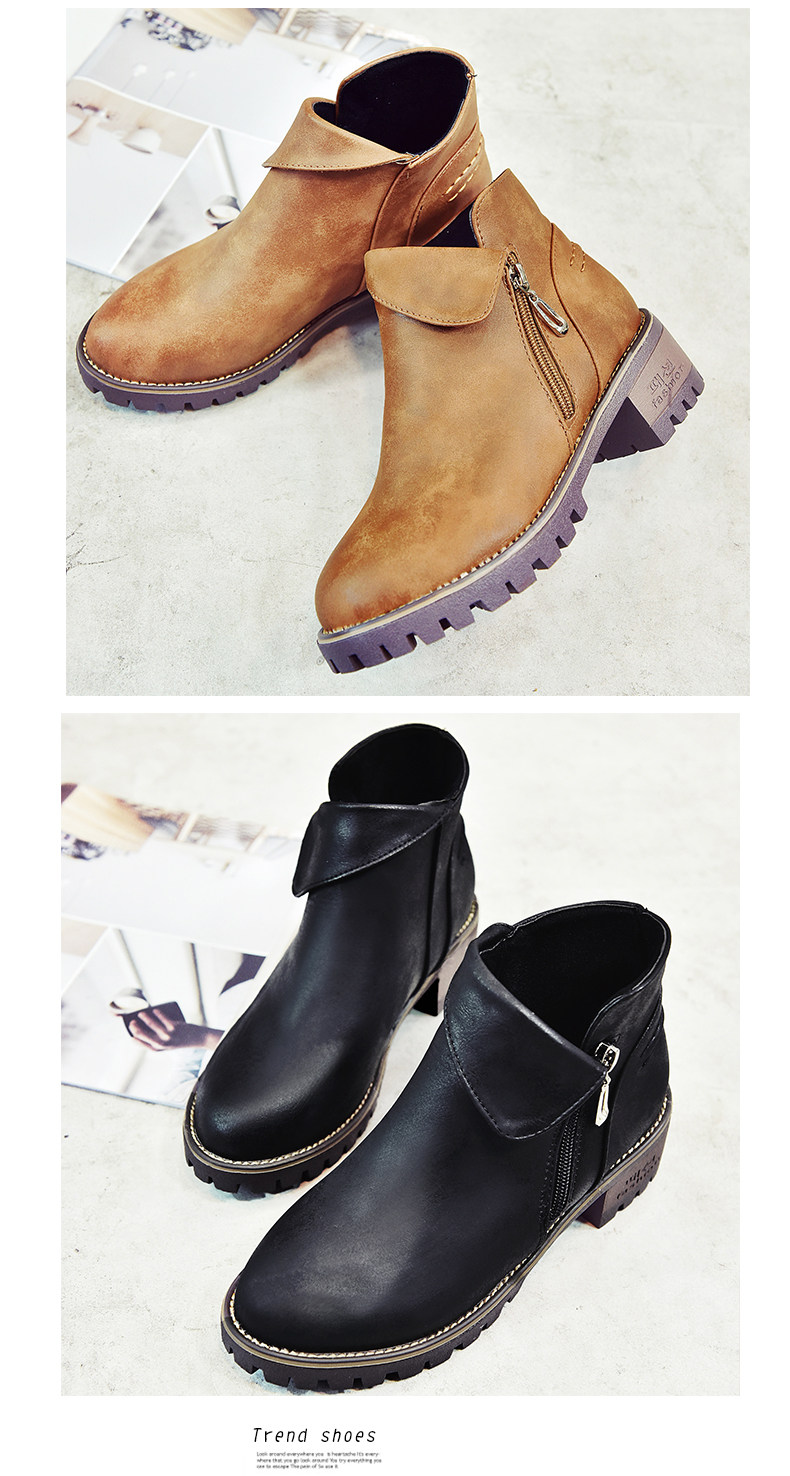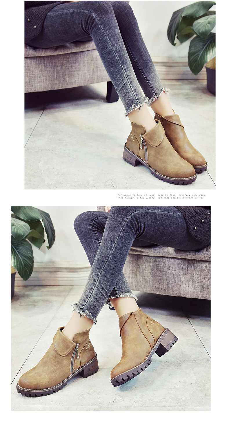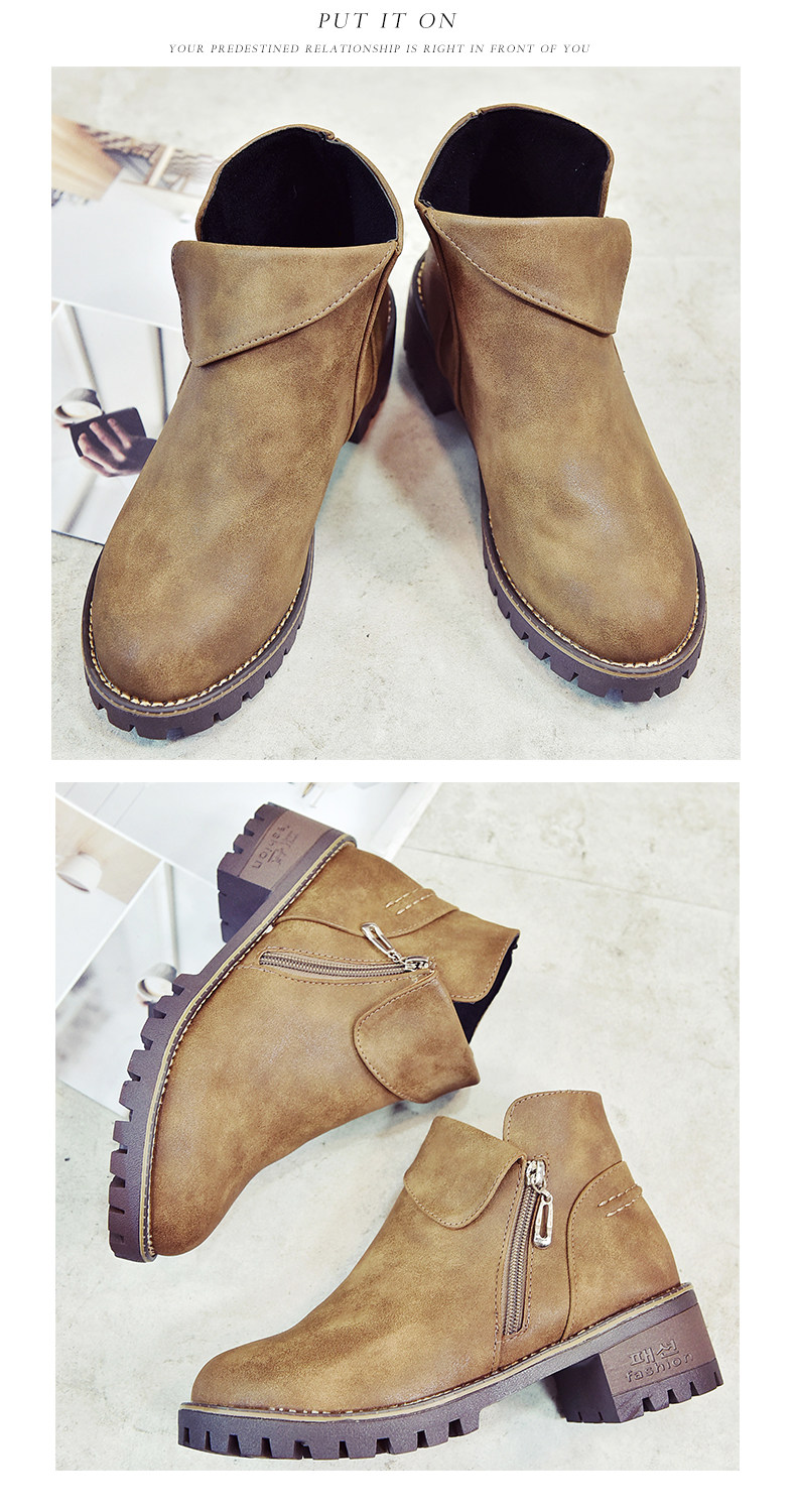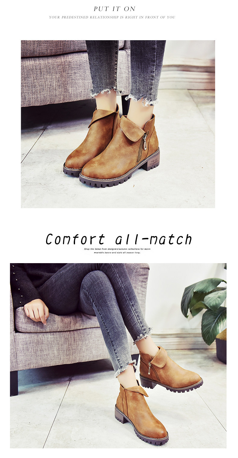 韩版粗跟切尔西靴中跟短靴女秋季新款原宿单靴百搭学生女鞋子