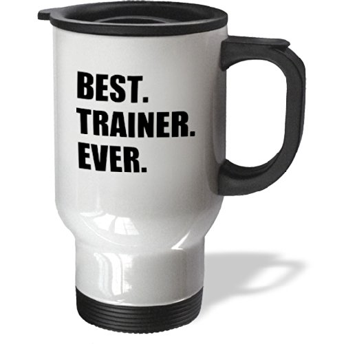 3dRose tm_185019_1 Best Trainer Ever, Fun Gift for Training Job Appreciation, Black Text Travel Mug, 14-Ounce, Stainless Steel