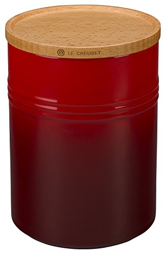 Le Creuset Stoneware 4" Canister with Wood Lid, 22 oz, Cerise (Cherry Red)