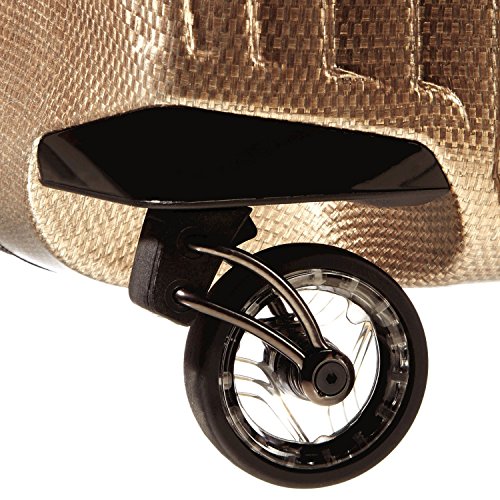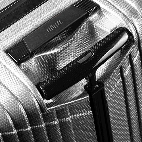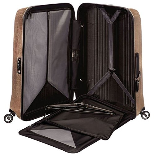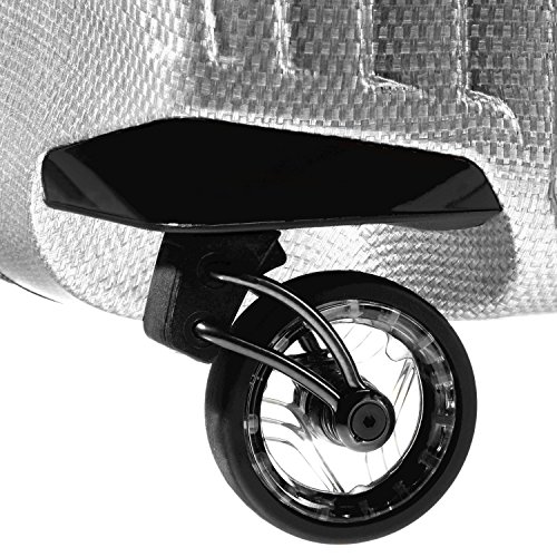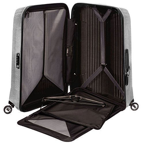 -. Feature : Extremely tough shell, sculpted and styled from innovative metallized "Curv" material / Shock-absorbing spring wire steel wheels that let you load up / Fully recessed sleek & soft premium leather carry handles / Recessed TSA combilock for secure travel / Ultra strong carbon fibre pull handle