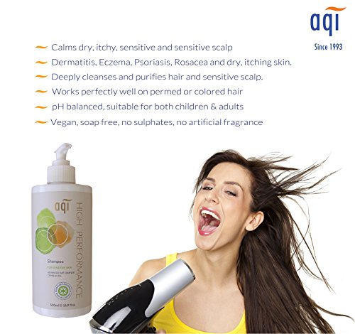 AQI HIGH PERFORMANCE SHAMPOO: Fragrance-free and an effective anti-irritant shampoo for highly sensitive and atopic skin conditions suitable for everyday use. Especially developed to be low lathering and mild enough for daily use. No Parabens, no artificial fragrances and soap free. No Animal Testing. AQI introduces this exciting new HIGH PERFORMANCE dimension to its natural therapy ranges, drawing on its 25year experience as a leader in sensitive skin and hair care products, all made in Australia in ISO GMP Certified Facilities. This gentle clarifying shampoo is especially formulated for use on dry, itchy or sensitive hair and scalp. This dry scalp treatment shampoo contains AQI's Four Factor Oat Complex, a key element which incorporates an amazing four different elements of natural oat extracts to calm a dry, irritated scalp and is suitable for people with extremely dry and itching scalp and skin, dermatitis, eczema, psoriasis and rosacea. Developed at our research labs and put through stringent tests, AQI HIGH PERFORMANCE shampoo contain a crucial combination of natural active ingredients especially selected to address specific scalp conditions, particularly Dermatitis, Eczema, Psoriasis and skin irritations.