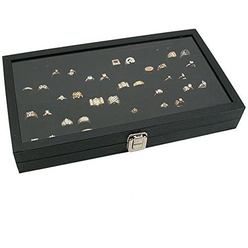 - Title : Glass Top Black Jewelry Display Case 72 Slot Ring Tray