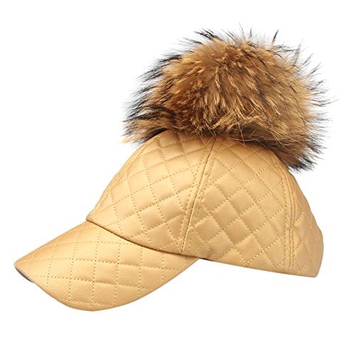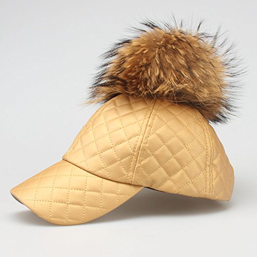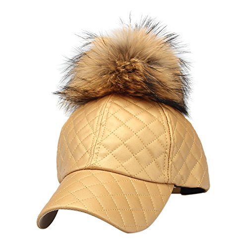 -. Binding : Apparel -. Brand : LITHER -. Feature : Faux Leather Visor / Suitable for: Neutral, men and women can,You can take it as a gift for your friends. / Adjustable Buckle closure,One Size Fits Most / Real raccoon fur pompon / leather baseball hat with fur pom pom -. ProductGroup : Apparel -. ProductTypeName : HAT -. Title : LITHER Women's Real Raccoon Fur Pom Pom Adjustable Baseball Cap Dad Hat