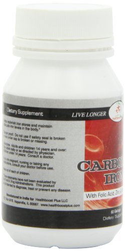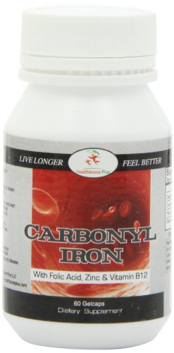 -. Binding : Health and Beauty -. Brand : Healthboost Plus -. Color : vitamins -. Department : Vitamins -. EAN : 0856048003004 -. Feature : Easy once a day formulation / Highly absorbable formulation with lower side effect than ferrous sulfate / Excellent value combined with folic acid, zinc and B12 -. IsAdultProduct : 0 -. Label : Healthboost Plus -. LegalDisclaimer : Any product claim statement has not been evaluated by the Food and Drug Administration and vitamins and supplements are not intended to diagnose, treat or cure any disease. -. Manufacturer : Healthboost Plus -. Model : HB004 -. MPN : 2.99 -. NumberOfItems : 1 -. PackageQuantity : 1 -. PartNumber : 2.99 -. ProductGroup : Health and Beauty -. ProductTypeName : HEALTH_PERSONAL_CARE -. PublicationDate : 2013-02-27 -. Publisher : Healthboost Plus -. ReleaseDate : 2013-03-10 -. Studio : Healthboost Plus -. Title : Healthboost Plus Carbonyl Iron 50 mg with Folic Acid, Zinc and Vitamin B12, 60 Count -. UPC : 856048003004