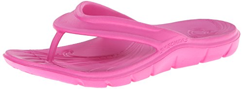 Your next favorite easy warm weather fun design is the SKECHERS Beaching It sandal. Nano Lite soft flexible plastic foam upper in a one piece sporty casual flip flop thong sandal with sculpted detail. Super lightweight flexible midsole. Flexible traction outsole. One piece design is easy care, durable and easy to clean. Weight: Just 2 1/2 oz. per sandal in a women's size 7.Feature
