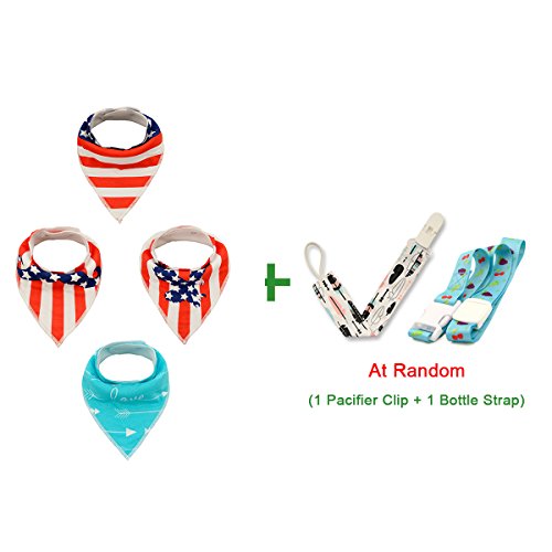 -. Title : Alva Stylish Baby Bandana Bibs for Boys and Girls 4 Pack of Super Absorbent Baby Gift Sets with Pacifier Clip and Bottle Strap