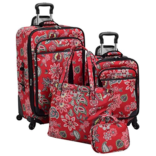 Product Description Buy this all new floral paisley design suitcase that's durable and could carry loads for your travel. A great item to have. Set Includes: 4 Piece, One (1) 28-inch upright suitcase, one (1) 20-inch upright suitcase, one (1) carry-on tote, one (1) small duffel bag Features: Fashion, Lightweight, Softsided, Expandable, Rolling, Spinner and Durable | Materials: Polyester 0