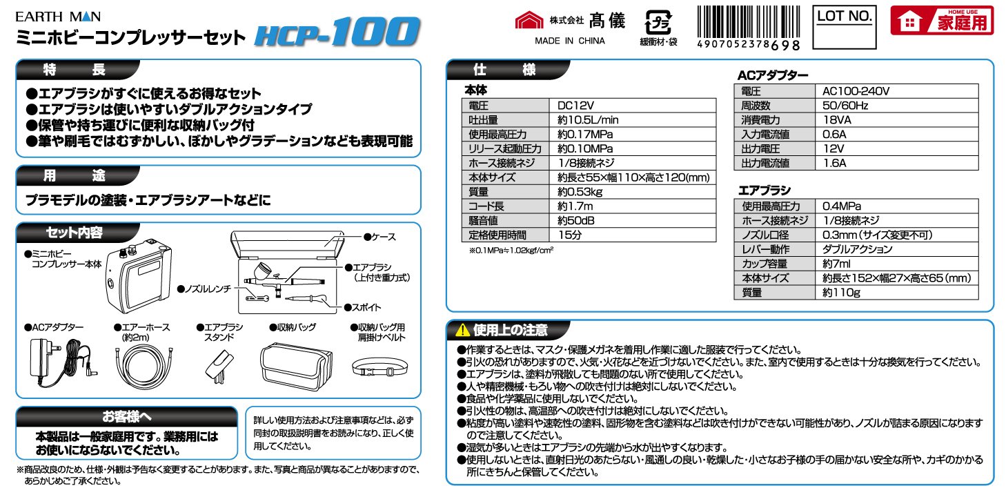 Takagi EARTH MAN mini Hobby compressor set HCP-100