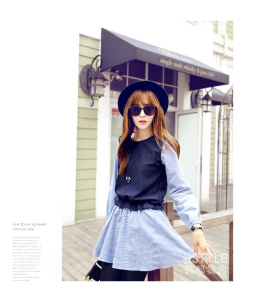まるで重ね着したようなストライプドッキングワンピースです♪