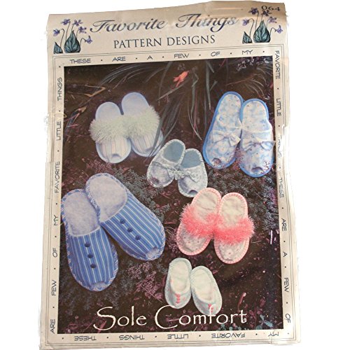 -. Feature : Favorite Things Sewing Pattern 064 / Sole Comfort / Slippers for Infants,Children & Adults / Designed by Leslie Gladman 2003 / Comfy to wear and easy to make slippers ten sizes are included in this pattern. Lovely in cottons, flannels, polar fleece or wool and for a warmer option line the slippers with furry felt. Finish with buttons, bows or fun, fuzzy knitted trim.