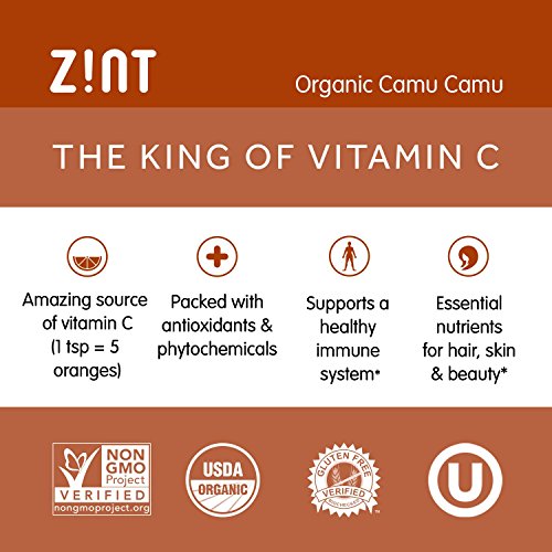 -. Feature : Zint Camu Camu Powder is the king of vitamin C, offering the densest natural source of vitamin C in the world as a tart, delicious powder / The most wholesome ingredients on Earth: USDA organic, non-GMO, gluten-free, vegan, kosher, raw, 100% pure camu camu fruit with no additives / Made from organic camu camu berries grown in South America, dried and milled at low temperature to preserve the berries' natural health benefits / Ready to use: Mix it in smoothies and juices, or sP.R.Inkle it over yogurt, ice cream and other healthy snacks / Powerful antioxidant: Our raw camu camu superfood supports a healthy immune system