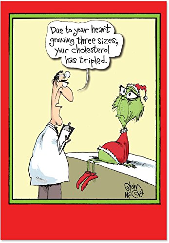 B5829 Box Set of 12 Grinch Cholesterol Funny Christmas Cards with Envelopes
