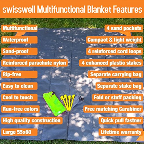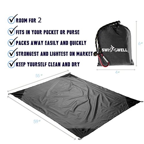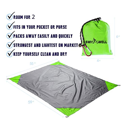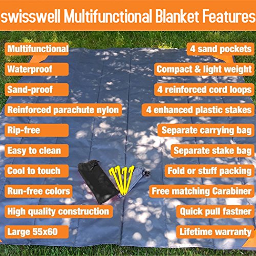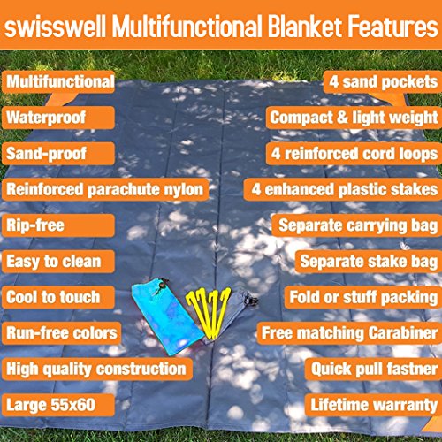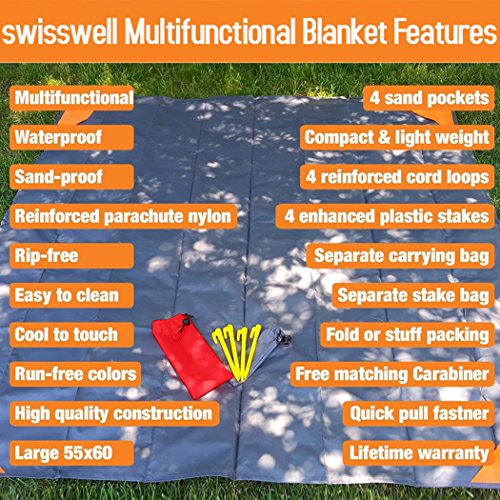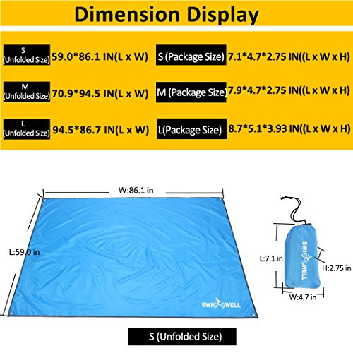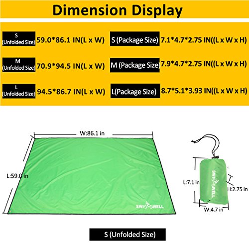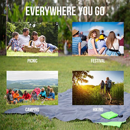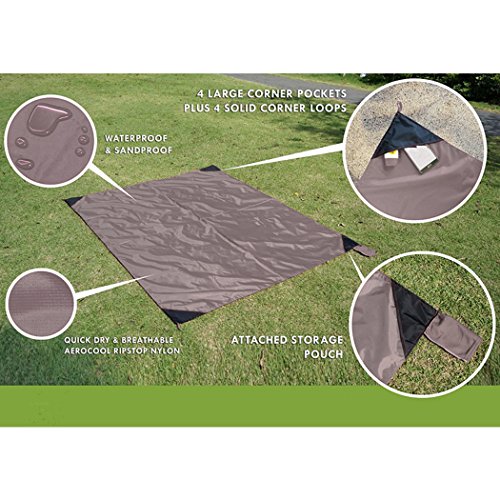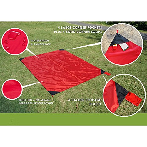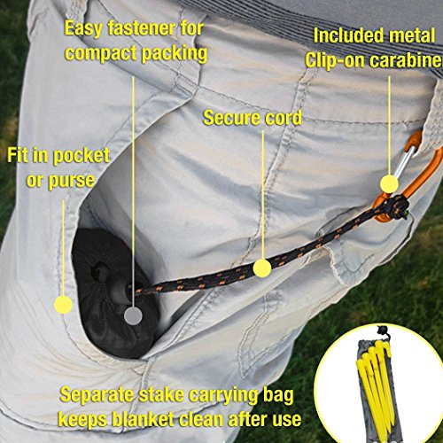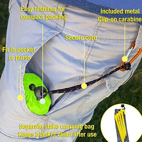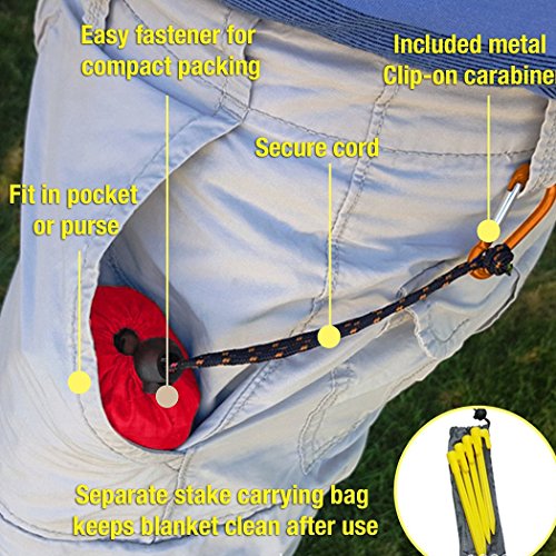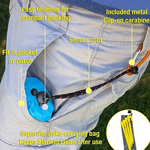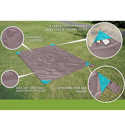 Lay down at ease, listen to the bird whispering and relax in top comfort on our all-weather outdoor blanket when you're going out on an picnic! 1) ROOMY ENOUGH FOR THE ENTIRE FAMILY Take this good opportunity to enjoy a wonderful family get-together on our picnic blanket, which measures only 3.9"x6.3" in the attached storage pouch and stretches out to a large 55.1"x59.1" blanket to easily accommodate 4 people seated or 2 lying down. 2) HANDY SPACE SAVER FOR ON-THE-GO USE Weighs only 8.5oz with its portable pouch and allows minimal space occupation in your suitcase, saddle bag, purse or even pocket; You can also clip it onto any backpack, stroller and keyring with the practical metal clip-on carabiner included. No more hassle and burden outdoors! 3) WATERPROOF, SAND-PROOF, PUNCTURE WEATHER RESISTANT Specially crafted from reinforced ripstop parachute nylon and built to last, our blanket keeps you away from the discomfort of dirt, water, sand, rocks, twigs or insects while delivers easy care and washing in the washing machine. 4) NEVER LET WIND INTERRUPT YOUR BEACH FUN AGAIN! Equipped with 4 corner loops at each edge which get ready to work with four enhanced ground stakes to keep the blanket stay put when the wind blows suddenly. Moreover, you can put some sand or rocks into 4 sand pockets to weigh it down or simply use them and another pouch sewn with blanket as extra storage space to deliver full protection for your valuables. Attention: 1) Please allow 1" differs due to manual measurement; 2) There might be a slight color deviation via different display. 0 |