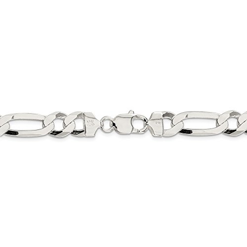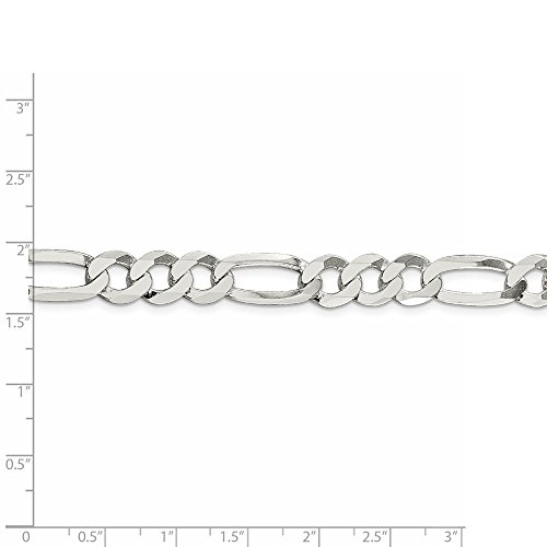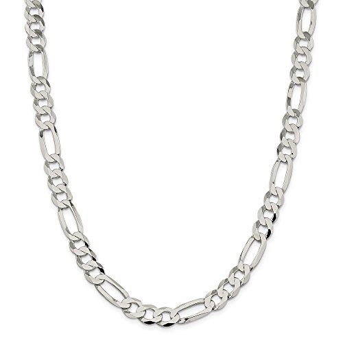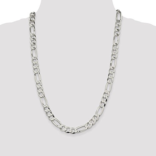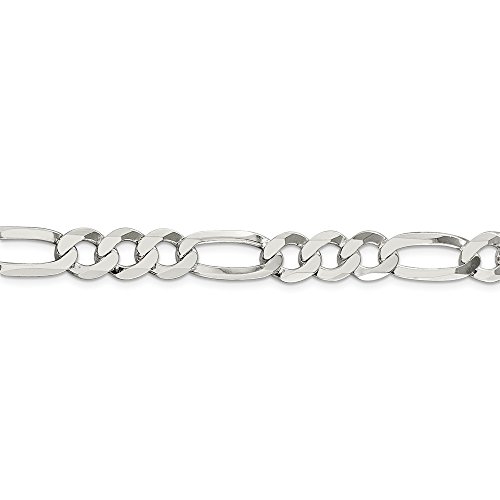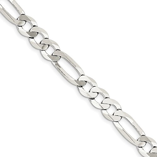 Solid 925 Sterling Silver 9.5mm Polished Flat Figaro Chain Necklace 22" - with Secure Lobster Lock Clasp