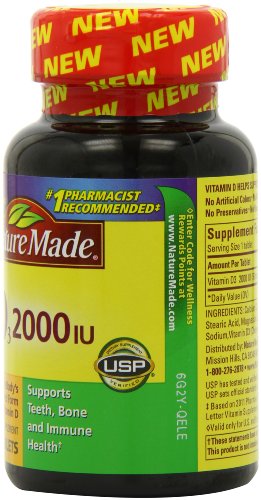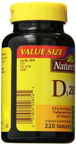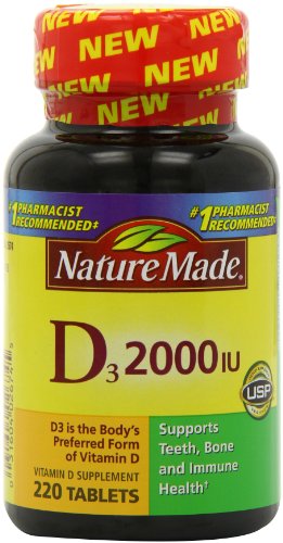 -. Binding : Health and Beauty -. Brand : Nature Made -. Feature : No 1 Pharmacists recommended brand of Letter Vitamin supplements / 100% Natural / No artificial colors; No artificial flavors; No artificial preservatives -. Label : Nature Made -. Manufacturer : Nature Made -. MPN : 540951 -. PartNumber : 540951 -. ProductGroup : Health and Beauty -. ProductTypeName : HEALTH_PERSONAL_CARE -. Publisher : Nature Made -. Studio : Nature Made -. Title : Nature Made Vitamin D3 2000 IU, Value Size, 220-Count