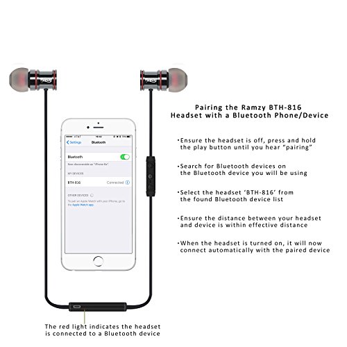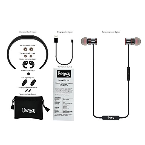 -. Title : Ramzy Wireless Bluetooth Magnetic Neckband In-Ear Headphones with Built-In Microphone for Gym/Sports