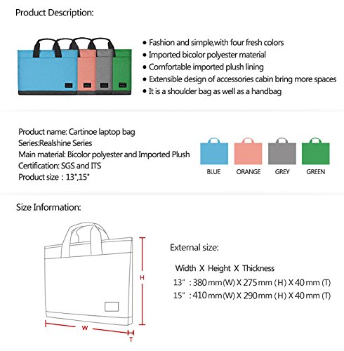 -. Feature : 100% Brand New and high quality laptop shoulder bag / Made of top quality nylon with fashion style on front side,that is anti-tear,durable,splashproof and looks more attractive. / Multi-functional design, handle, one shoulder, Which can be changed at any time, convenient to attend any occasion / suitable for 12-15.4 inch Laptop / Notebook / MacBook / Netbook / Ultrabook / Chromebook / Tablet Computers of most brands( Apple / Dell/ HP / Samsung / Sony / Acer / ASUS / Lenovo / LG / IBM / Gateway / Toshiba / Panasonic / Fujitsu etc.),may not snugly fit all computers due to variations in the sizes of different models