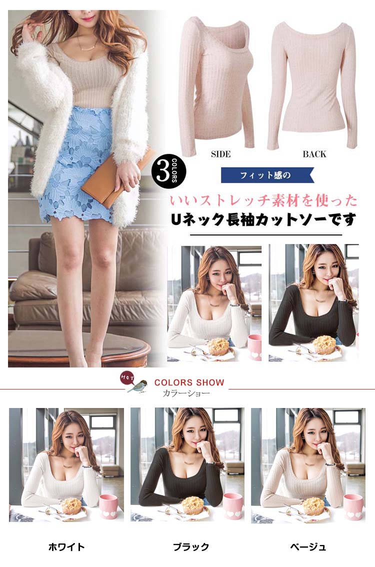 | フィット感のいいストレッチ素材を使ったUネック長袖カットソーです広めに開いたUネックで美しいデコルテをアピールしますシンプルながらもセクシー溢れて、色違いで欲しくなりそうな着回し力抜群1着ですベーシックなデザインなので、コーディネート幅広がります | |