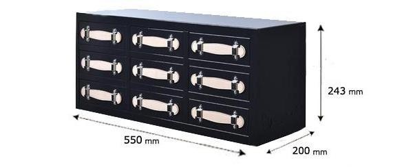 | サイズ | 本体:W550mm×D200mm×H243mm、引出し内寸:約W155mm×D181mm×H34mm、板厚:0.6mm 個装サイズ:21×56×25cm |