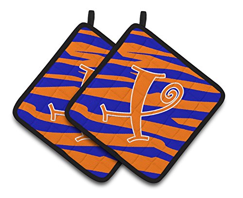 Caroline's Treasures Monogram Initial x Tiger Stripe Blue & Orange Pair of Pot Holders CJ1036-XPTHD, 7.5HX7.5W, Multicolor