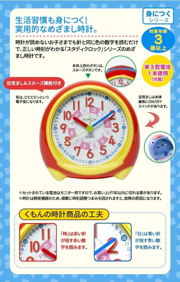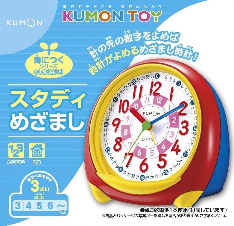 針の色と同じ色の数字を読むだけで、正しい時計の読み方がわかる「スタディクロック」の目覚まし時計です。 |