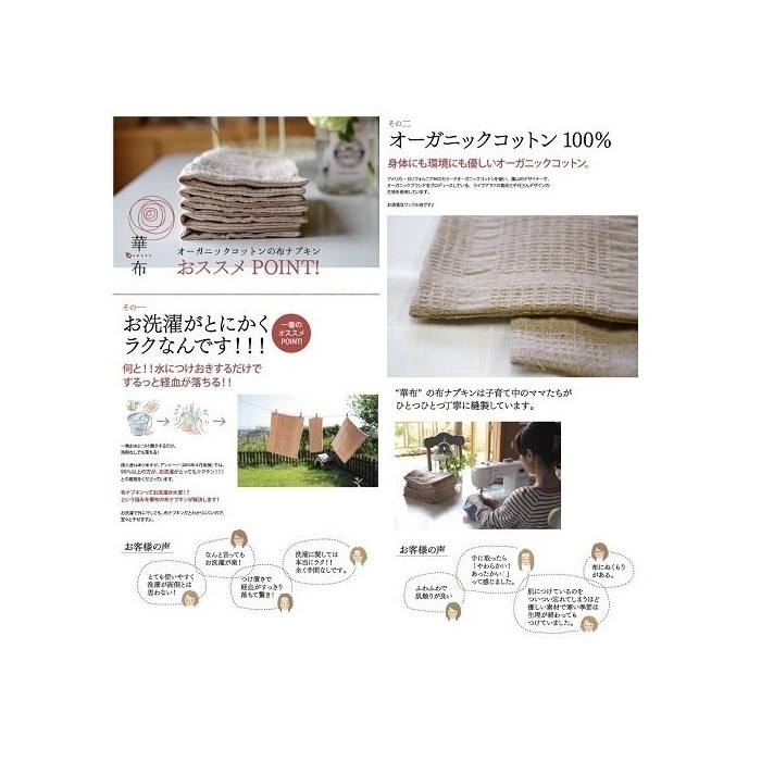 원본상품명: 華布 オ?ガニックコットンの布ナプキン【スナップ付き(スクエア約13×約13cm)まとめ買いセット】6枚入り