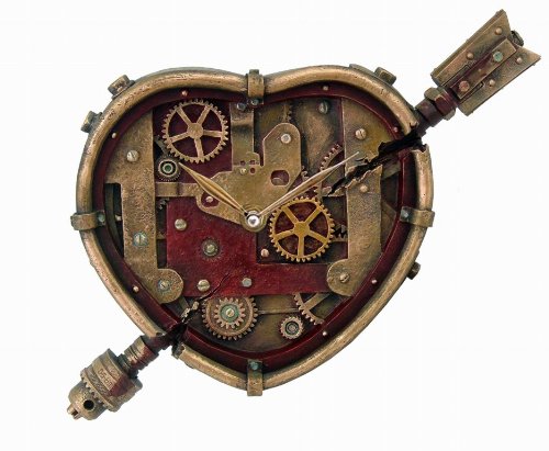 -. Title : Steampunk Wall Clock Heart Pierced Cupid Gearwork Painted Resin [Toy]