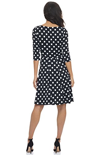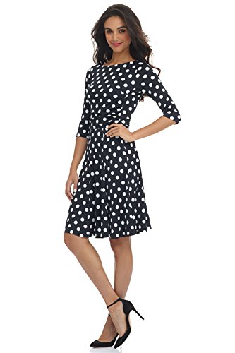 Showcase your curves in this Rekucci slimming dress with 3/4 sleeves. The fit-n'-flare silhouette with flippy skirt creates a great hourglass shape, while the draped waist provides a little bit of drama and has a subtle slimming effect. The modest neckline is perfect for office, church or even a night out. Pair it with a statement necklace for a touch of the unexpected. This one and done dress transitions seamlessly from desk to dinner and less time getting ready means more time enjoying life. Machine Wash in Cold Water, hang/lay flat to dry.