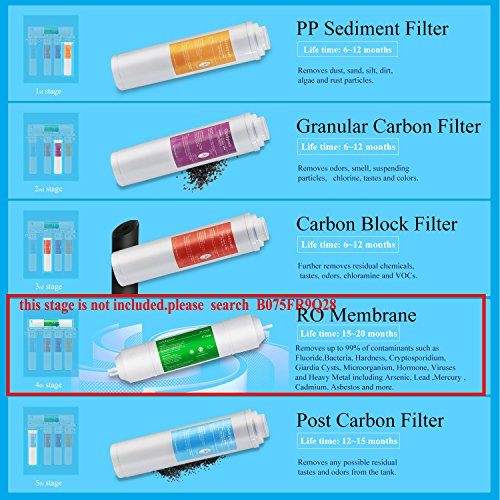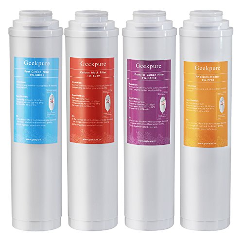 Geekpure Replacement Pre-Filter Sets for RO-TW Series Reverse Osmosis System(1xPP Sediment 1xGranular Carbon 1xCarbon Block 1xPost Carbon Filter- NO membrane)