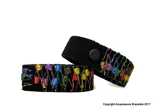 Natural Nausea Remedy for Motion Sickness, Morning Sickness, Carsickness, Seasickness, Treatment Related Nausea occurring from Chemotherapy/Radiation, Heartburn, Anxiety, Indigestion, Vertigo, and Depression. Easy to use Acupressure with two different pressure point options (P6 or H7, both located at/near wrist crease) for instant nausea relief. Evidence shows that pressure point H7 works well for children's anxiety/nausea/nervousness. Full directions included with diagrams and video links for proper wear. Clinically proven to work. Bracelets must be worn correctly for effectiveness. Please read all directions prior to use/wear. Certified Medical Banding Material Manufactured in the USA. Bracelets are ¾" in width. Simple Velcro Closure for Adjust Ability. 4 sizes offered.; small/child 6.5", medium 8", large 9" and x large 10". X large not available in all styles. All sizes measured in wrist circumference. Custom sizing available with purchase. Message seller with preferred sizing. Acupressure Bracelets are NOT considered a medical device and may NOT relieve symptoms for some individuals.