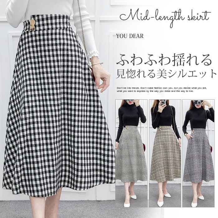 ■歩くたびにひらりと揺れるフレアシルエットと膝がすっぽり隠れる上品な丈が、大人ならではの女性らしさを演出してくれます!■余計な装飾を省いたシンプルなデザインは、ニットやプルオーバーなどどんなトップスにも馴染んでデイリーの着まわしに大活躍します!■お腹まわりをホールドしてくれるゴムデザイン。窮屈すぎないフィット感と引き締め効果があり!■キーワード:レディースファション ハイウエスト 膝丈スカート ミモレ丈 チェック柄 ポケット 体型カバー Aライン ウエストゴム コーデ 大人 フォーマル カジュアル 柔らかい お洒落 着痩せ■使用シーン等:結婚式 パーティー 結婚パーティー 二次会 披露宴 お呼ばれ 普段使い デイリー 通学 通勤 OL オフィス フォーマル ビジネス ママ 入園式 入学式 卒園式 お食事会 謝恩会 20代 30代 40代 50代 60代★素材:ポリエステル★生地の厚さ:厚手★カラー:赤チェック、黄色チェック、黒チェック、灰チェック(写真参考)★サイズ(CM)M:ウエスト66-98 スカート丈78L:ウエスト70-112 スカート丈79XL:ウエスト74-116 スカート丈80