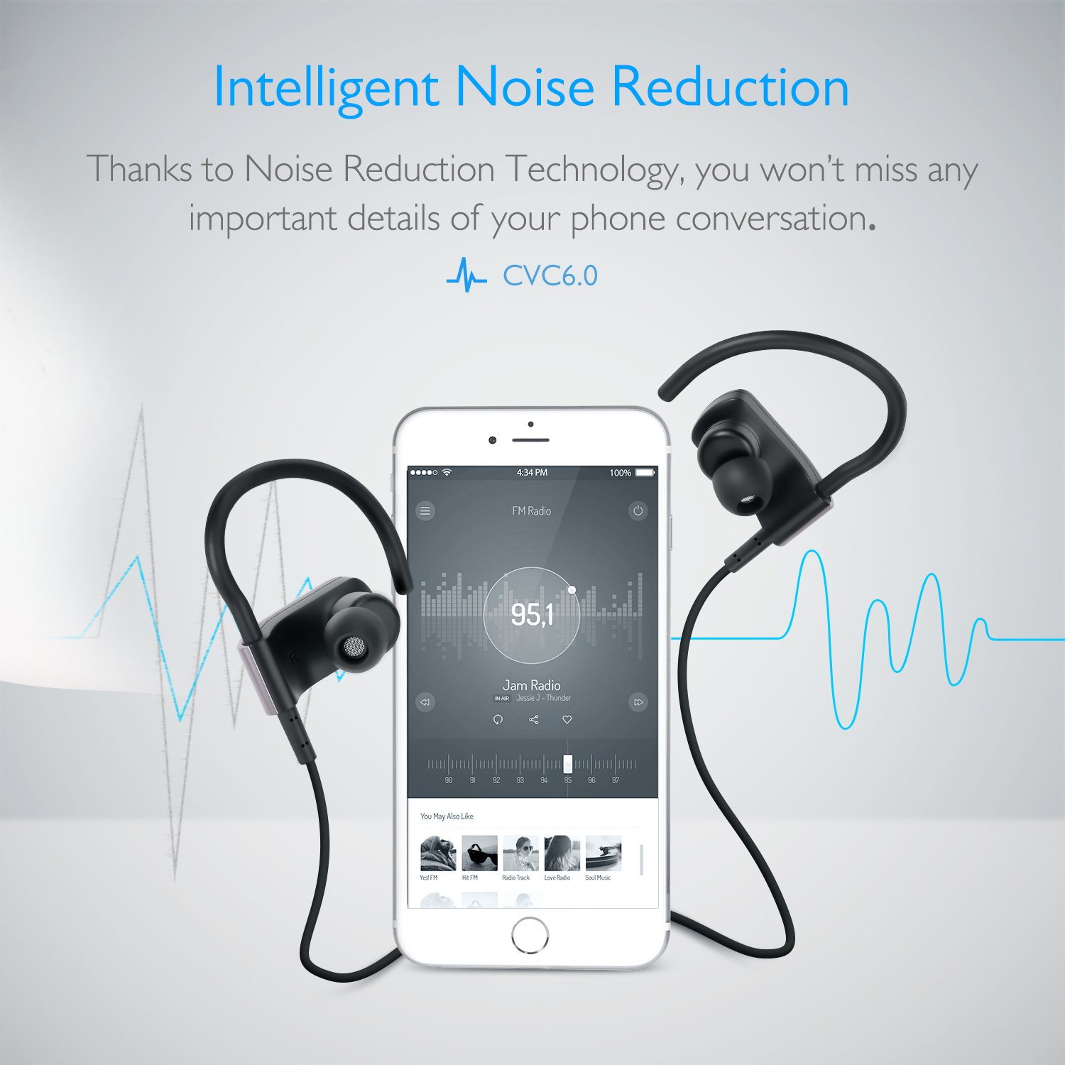 Ergonomic ear-hook design, with a soft hook that fits over the ears, does not get tired even when worn for a long time.