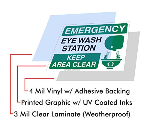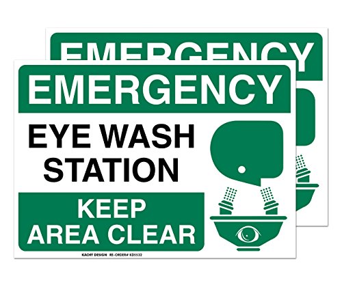 (Set of 2) Emergency Eye Wash Station Sign - 10" x 7" 4 Mil Vinyl - LAMINATED For Ultimate Protection & Durability - Self Adhesive Decal - UV Protected & Weatherproof - Heavy Duty