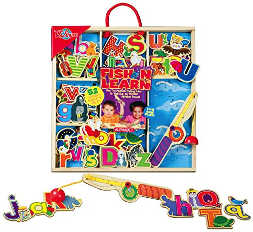 Kids will have fun with letters and developing hand-eye coordination with this wooden magnetic  “fishing” set.  The 2 magnetic “fishing poles” with chunky wooden handles are the perfect size for little hands to grasp while “fishing” for the 52 brightly illustrated letters.  This deluxe set also includes an heirloom quality wooden case, perfect for storage or travel.
