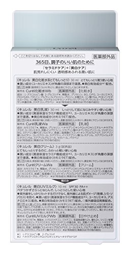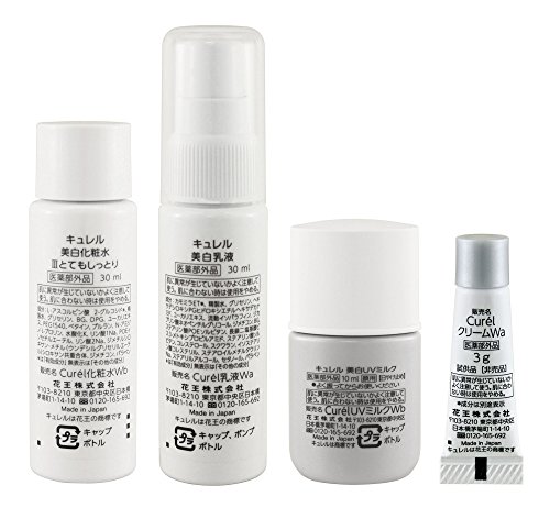 [가오큐렐미백 트라이얼 키트3 73ml]서는,투명감 어느(있는) 윤택 피부에 유지하고, 멜라닌의 생성을 억제해 기미(얼룩) 메밀국수 카《스》를 막는다,건조성 민감성 피부를 생각한 저 자극성의 미백 스킨 케어입니다.【세트내용】미백 화장수3×30ml미백 유액×30ml미백UV밀크(SPF30PA++)×10ml미백 미용액×3g(견본) ●무향료 무착색 알코올 프리(에틸알코올무 첨가) ●의약부외품