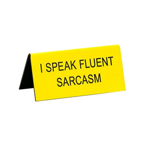Yellow I Speak Fluent Sarcasm 2 x 3.5 Small Humorous Table Top Desk Sign