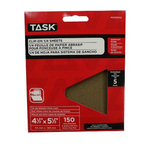 Task Tools POX55150 4-1/2-Inch by 5-1/2-Inch Clip-On 1/4-Sheet Sandpaper, 150 Grit, 5-Pack