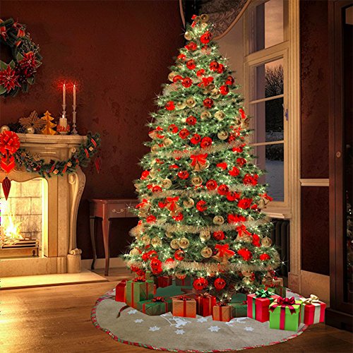 Two plaid ties at the opening make it easy to fix and lock, allow you to secure tree skirt around and in place underneath the Christmas tree. You can tie it as the knotbow to make it more attracting.
