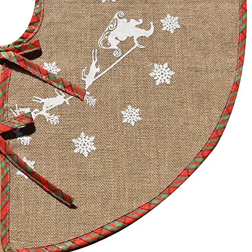 Awtlife Burlap Snowflake Christmas Tree Skirt 30" Tree Skirt for Xmas Decor Festive Holiday Decoration, Santa Claus and elk to send gifts