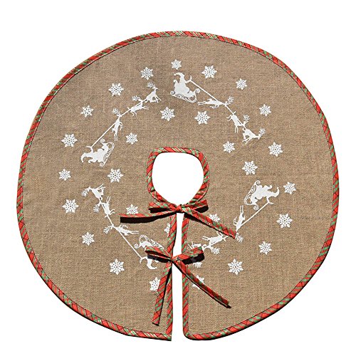 30 inch burlap tree skirt with snowflake and Santa Claus and elk design