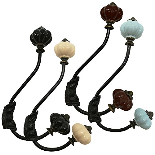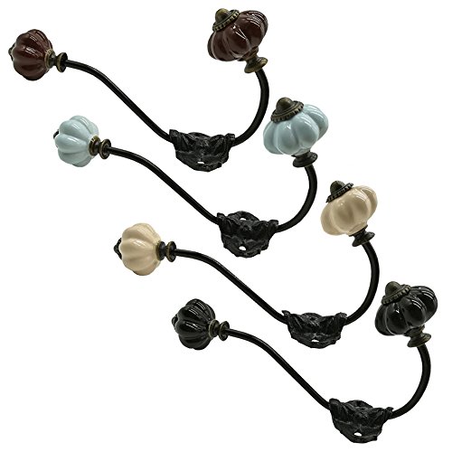 WISHAVE Creative Curtain Hooks Ceramic Pumpkin Decorative Clothes Coat Hat Wall Metal Hangers (Beige)
