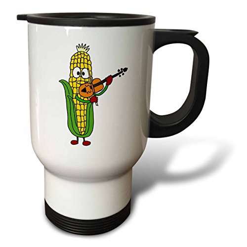 3dRose tm_196086_1 Funny Ear of Corn Playing The Fiddle Stainless Steel Travel Mug, 14 oz, White
