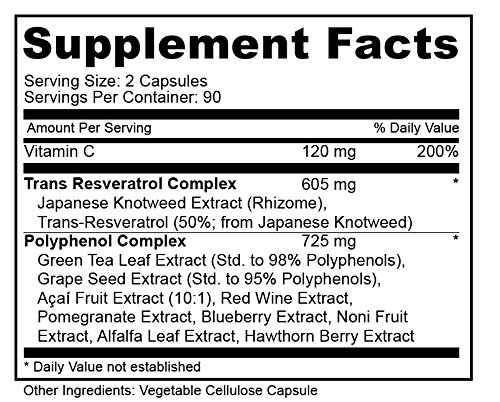 -. Feature : 100% PURE & NATURAL Ingredients. Perfectly crafted with the exact amounts of ingredients for optimal nutritional value, and Maximum benefits / 1450MG of the potent Resveratrol Blend made with: Trans-Resveratrol, Green Tea Extract, Grape Seed Extract, Vitamin C, Acai Extract, Pomegranate Extract, Blueberry Extract, and More / NO Fillers, NO Artificial Ingredients, NO Harmful Preservatives, NO Inferior Ingredients / EXCELLENT Source of Rich Potent Anti-Oxidants in Vitamin C, Easy to Swallow Capsules / 100% MONEY BACK SATISFACTION GUARANTEE, At Purely Beneficial we stand behind each and every one of our high quality products. Contact us for a no hassle return at any time if you are not pleased.